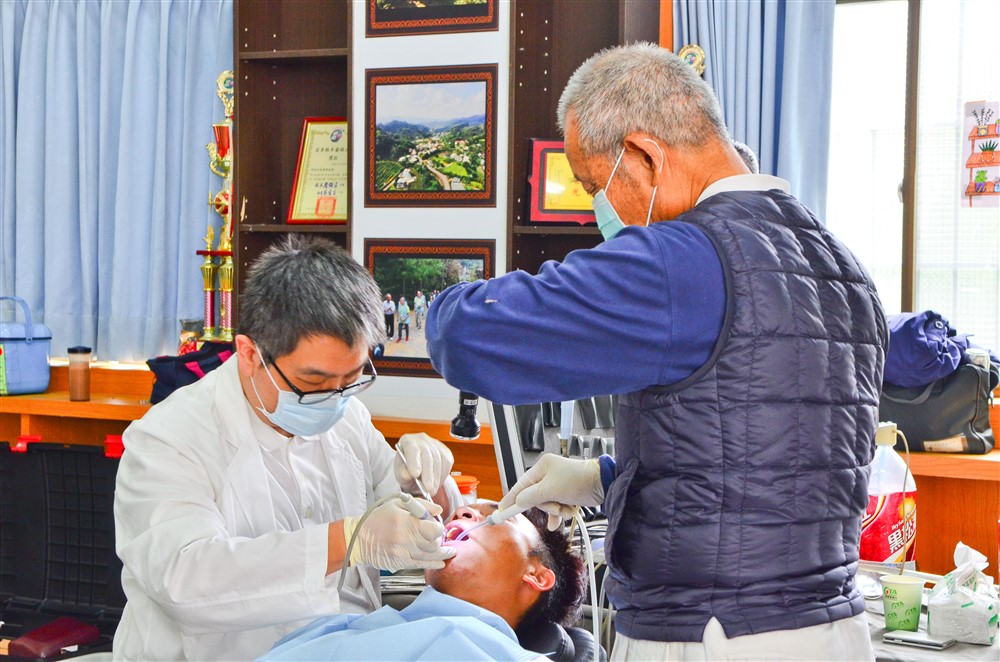 義診上,中區人醫林世昌牙醫師為鄉親悉心看診。