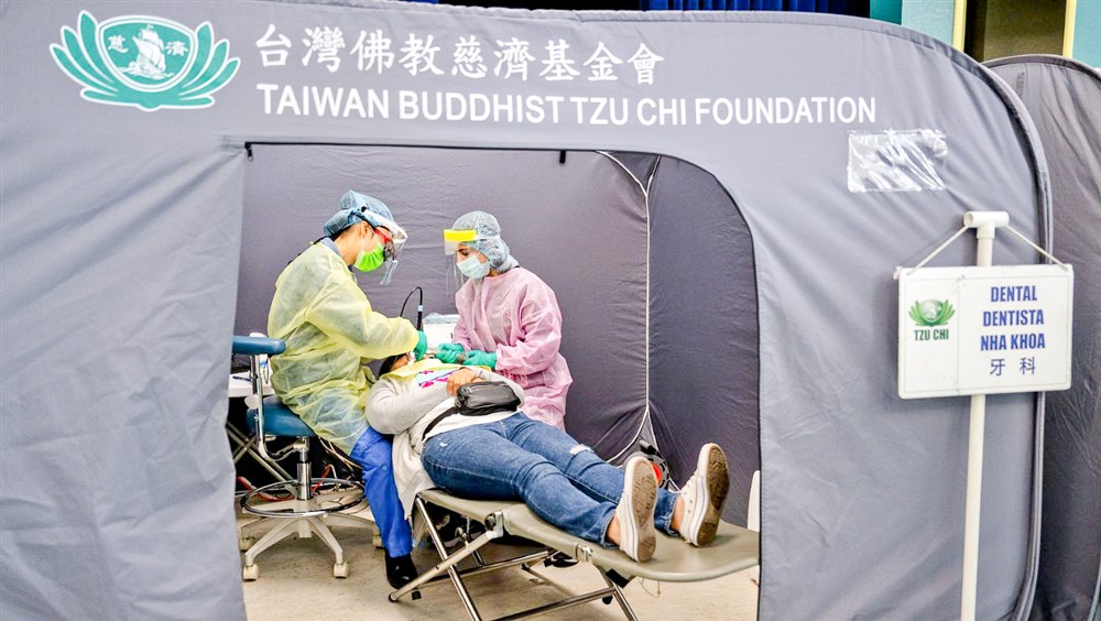三月十日慈濟矽谷志工團隊於羅斯瑪麗小學舉辦社區義診,美國慈濟人醫會透過多科別看診服務當地西裔家庭。圖為牙科診療區。