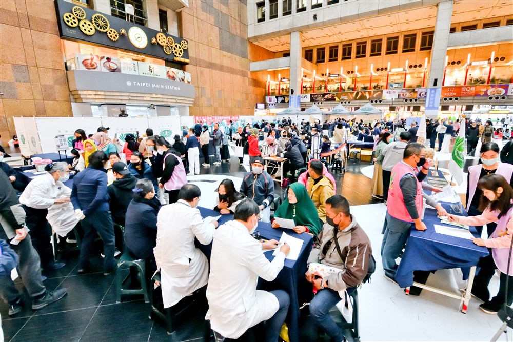 三月三日臺北車站大廳的國際移工健康關懷活動上,北區慈濟人醫會透過多科別義診服務,照顧移工朋友的健康。攝影/陳李少民