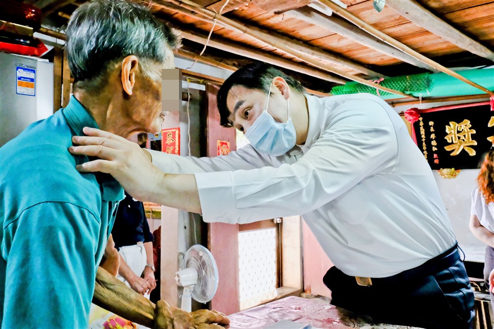 北區人醫蘇柏丞醫師細心為阿公做檢查。攝影/萬文郁