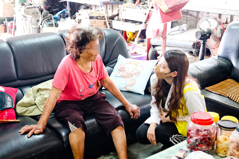 照顧生病的老伴大不易,陳品璆心理諮商師蹲下來傾聽阿嬤的心聲,專注陪伴。