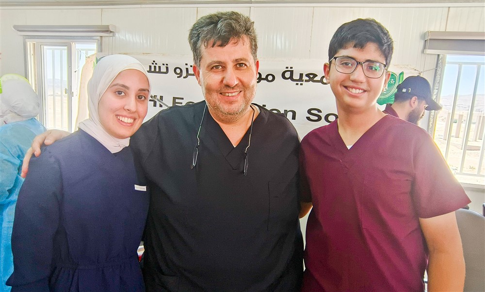 「今天我們來到一個很貧窮,離安曼很遠的地方。居民平常沒有辦法接受到足夠的醫療照顧。我們跟著慈濟來到這裡,為他們服務。」此行約旦人醫安賈德醫師特地帶著兒女來當牙助,一家三口一起投入義診,藉此滋養孩子的感恩與慈悲心。志工如思和藥劑師兒子盧斯亦是親子同場服務。