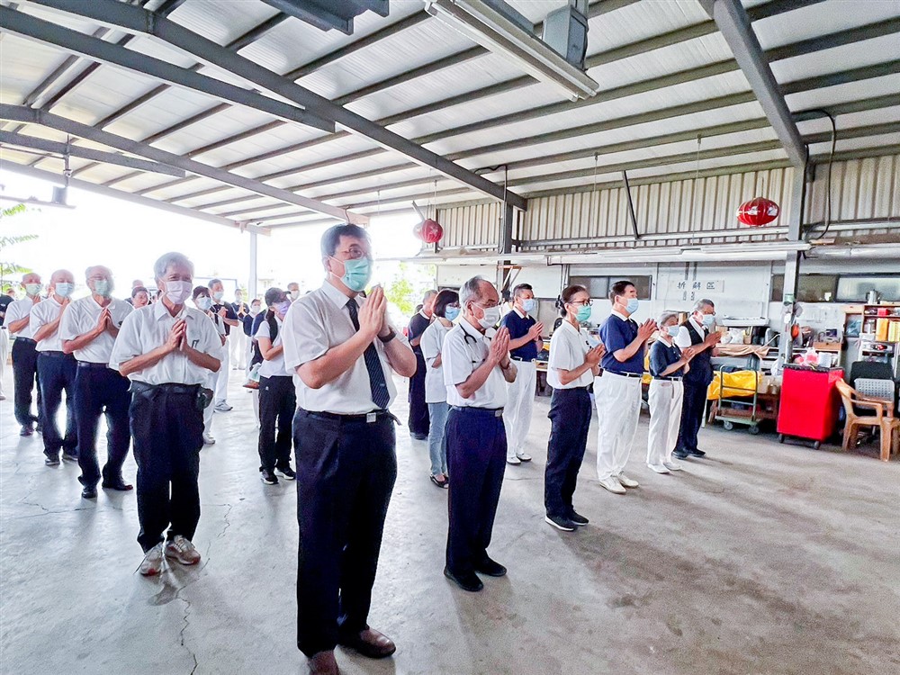 六月十六日中區慈濟人醫會醫護人員及志工共七十五人團隊前往苗栗,進行南庄義診暨往診服務,開診前眾人虔誠祈禱。