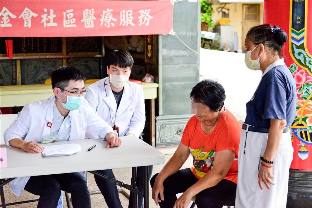 賴阿嬤拄著助行器,一拐一拐的從房內走出來,林金龍醫師貼心趨前扶著,請她慢慢走。林醫師細心問診,了解老人家十年前心臟裝支架,血壓高、膝蓋痛,有時會頭暈,患有皮膚病長年擦藥等病史。阿嬤說起這兩天站都站不起來,讓她很難受。