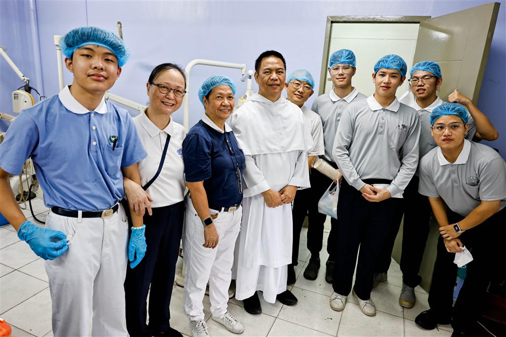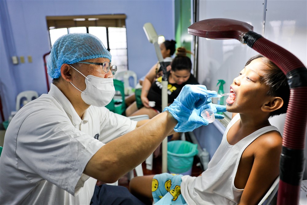 眼科區,菲律賓慈濟人醫會史美勝醫師悉心指導、身教示範,讓醫學生吸收到專業知識,更學習到視病猶親的態度。牙科區,在慈大任教的東區人醫李彝邦牙醫師,三度陪伴人醫菲揚志工團出隊服務,不僅貢獻一己之力為病人看診,也讓學子們擔任牙助的角色,協助牙科區的診療作業。他說即使看診再累,也要傳承醫療人文,期許未來的大醫王醫術高超又富有同理心。