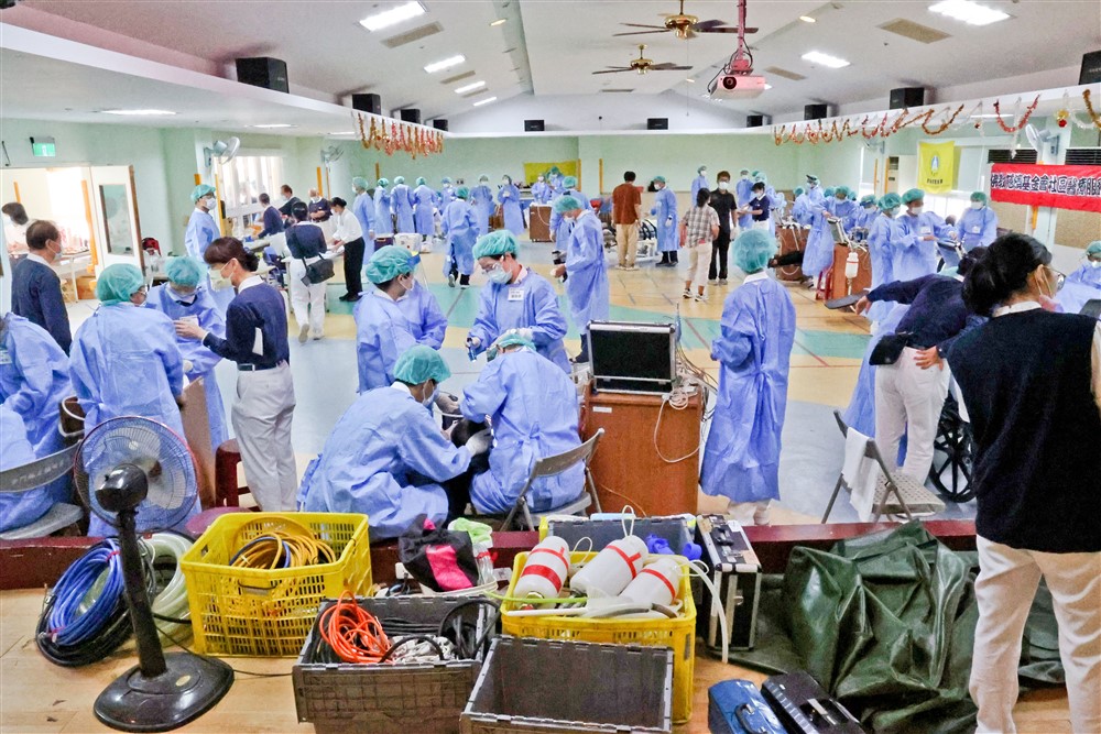 郭明宗醫師(右)把握機會與人醫志工團隊一同付出。攝影/陳何嬌