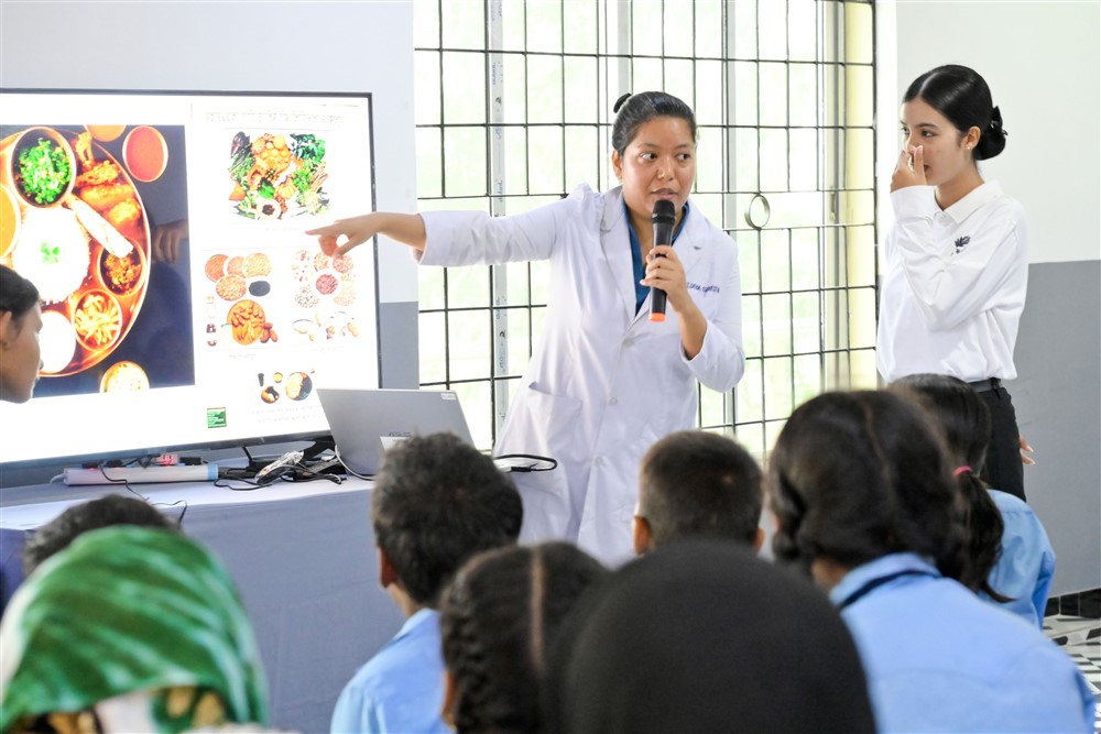 比蒂莎護理師(Bitisha Bhandari) 以本地方言透過即席問答的方式,教導村民培養健康的生活習慣,像是夏天需要多喝水,飲食上少糖少油少鹽,不菸不酒不嚼檳榔等。比加亞醫師(Bijaya) 也說明如何讓飲食內容達到營養均衡,以及提醒父母要讓孩子們少吃洋芋片等零食。醫護以活潑生動的語言吸引大人小孩認真聽講。
