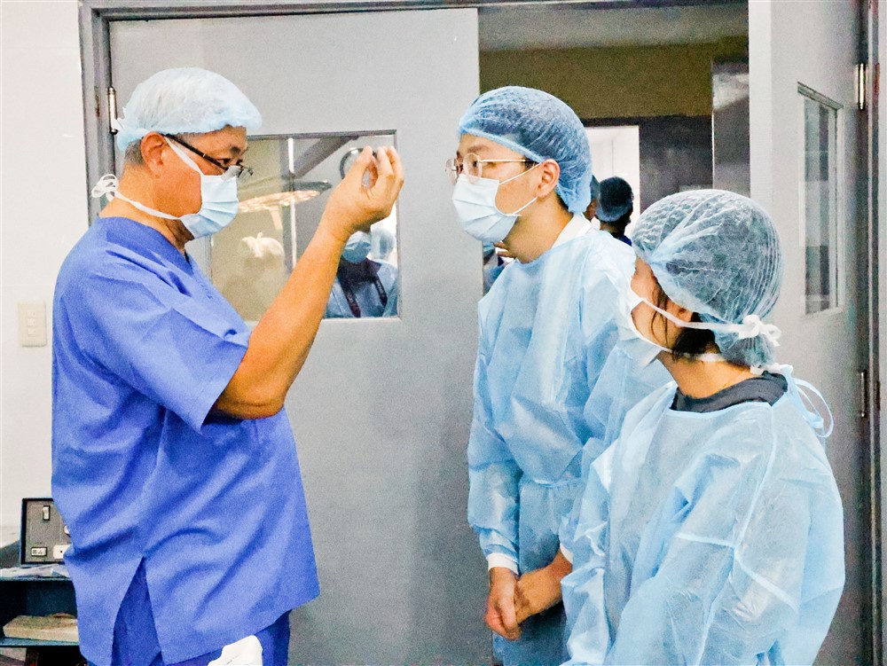 菲國人醫柯賢智醫師(左)悉心為觀摩手術的學員解說流程。