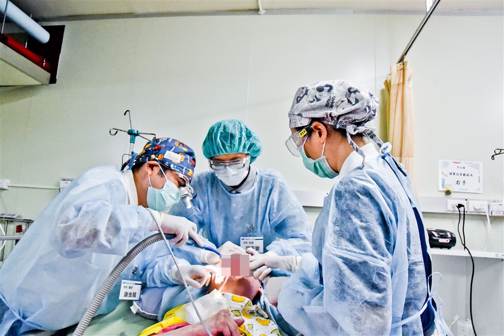 黃韋翰醫師(中)願以牙科專業貢獻一己之力。攝影/陳何嬌
