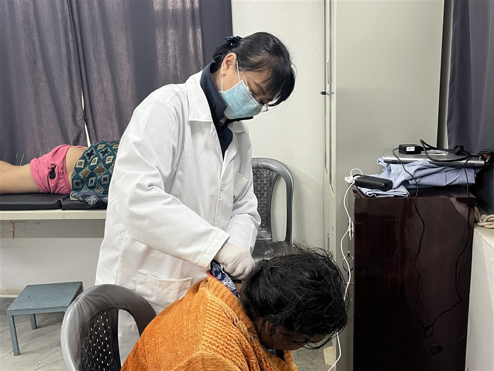 為了這場義診,馬來西亞陳俗潔中醫師將自家的診所休診十五天,全心投入服務,她說這是自己應該做,也心甘情願做的事。首次來到藍毗尼的陳醫師分享,多數病人體質偏寒,常見肩頸、脊椎、腰膝勞損疼痛,腸胃不適者也不少;加上冬季氣候寒冷,因此治療上特別著重針灸、艾灸等「溫熱」調理方式。治療後,病人普遍感到身體溫暖、舒服,氣色也有所改善。有些疼痛個案一次治療即可感受成效,也有病人需持續治療,才能逐步改善。「只要病人願意前來,團隊都盡力提供治療,不僅希望緩解病痛,更期盼將關懷與愛帶進他們心中。」