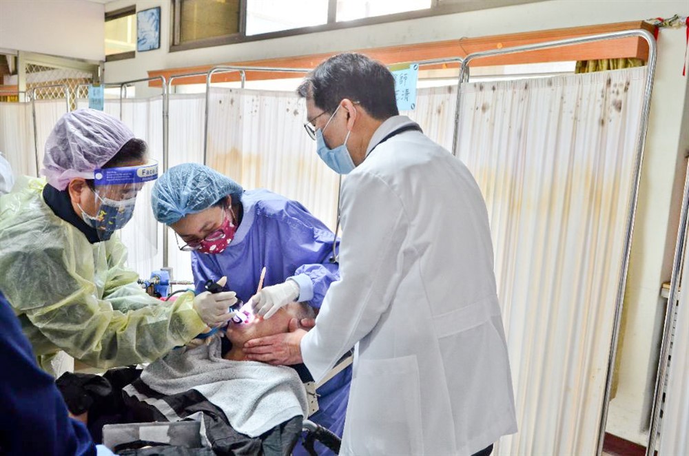 左圖:三月十九日中區慈濟人醫會牙科七十六人團隊前往臺中康禎護理之家進行洗牙義診服務。
