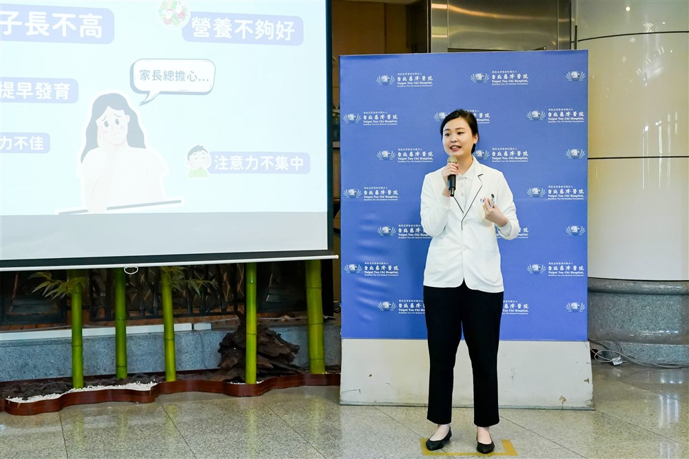 台北慈濟醫院李盈瑩營養師分享兒童茹素的好處,破除一般民眾迷思,兒童吃素一樣能健康成長。攝影/盧義泓