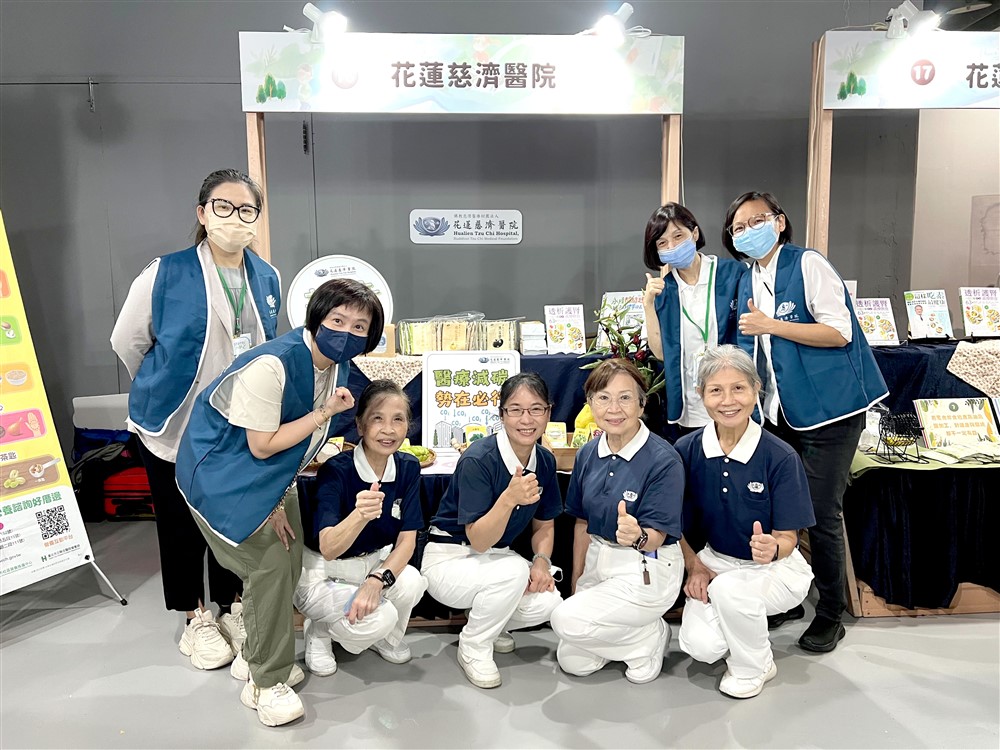 為響應響應聯合國氣候大會《氣候與健康宣言》,十月十八日、十九日於臺北華山文創園區舉辦「二○二五健康永續行動暨蔬食生活市集」,花蓮慈濟醫院受邀為推素行動支持夥伴,營養科團隊和慈濟志工設計蔬食點心分享,鼓勵民眾嘗試美味蔬食。營養科更設計互動小遊戲,推廣素食的營養與減碳,喚起民眾健康意識和對花蓮農業的關懷。