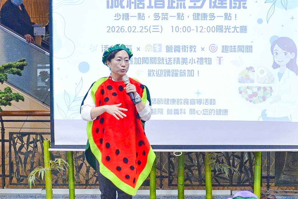 台北慈濟醫院慶祝營養師節,祝福民眾「減糖增蔬多健康」。
