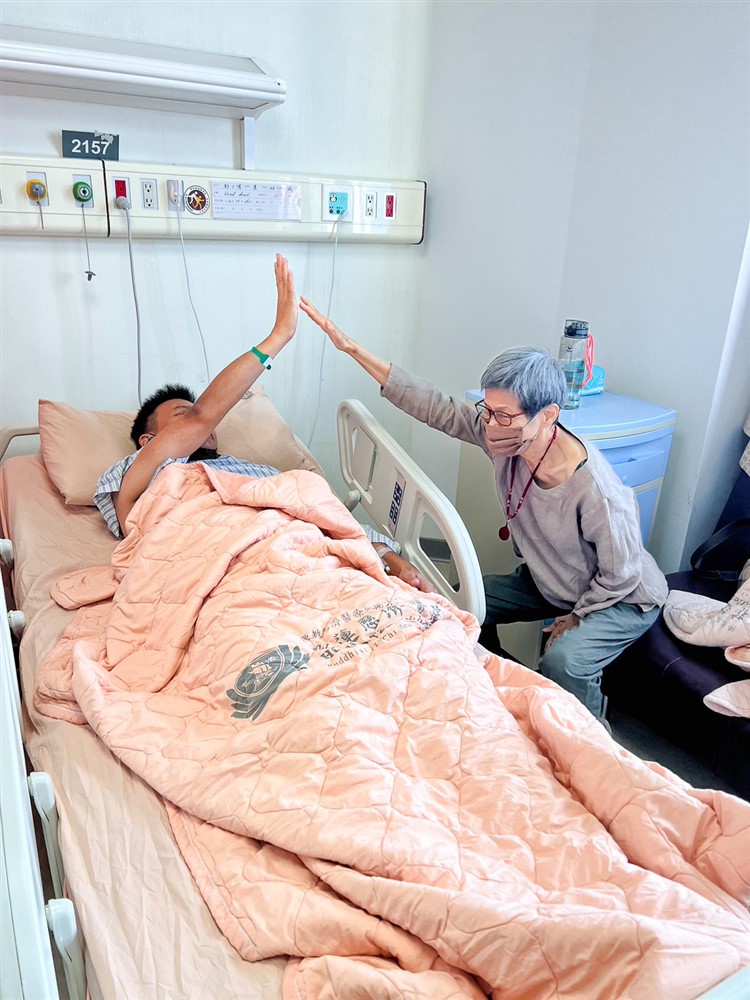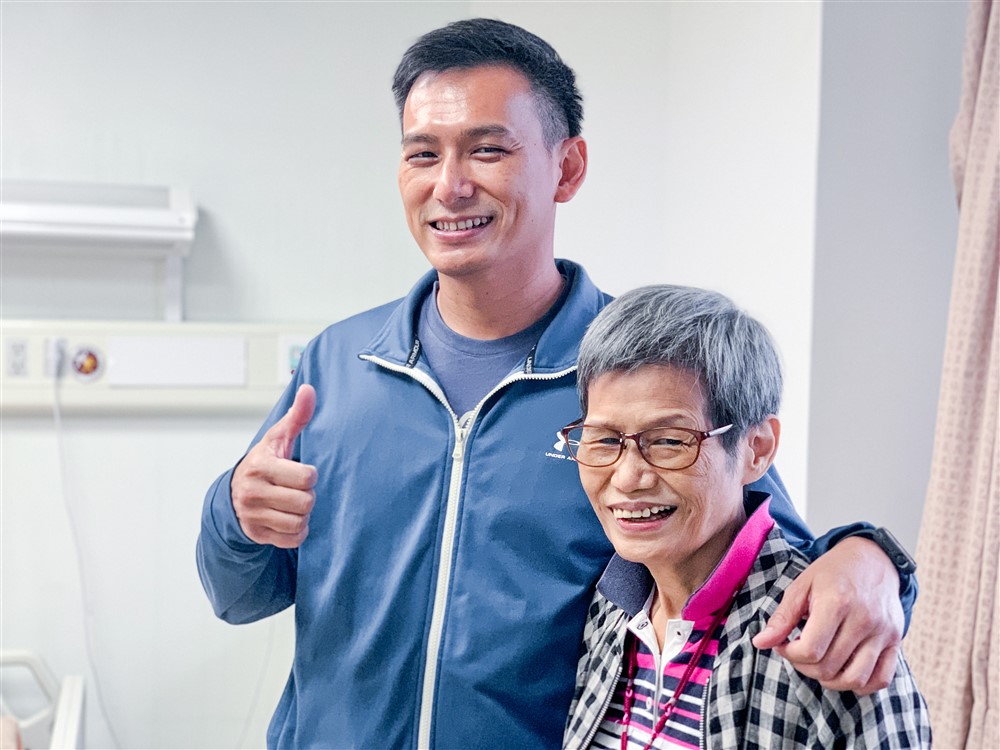 從高雄一路陪伴的慈濟志工呂忠信、陳美華,感恩能陪伴這對心慈善解的母子,捐髓過程歡歡喜喜,相信一定能把最好最有活力的造血幹細胞提供受贈者最好的能量,恢復健康找回平凡的幸福。