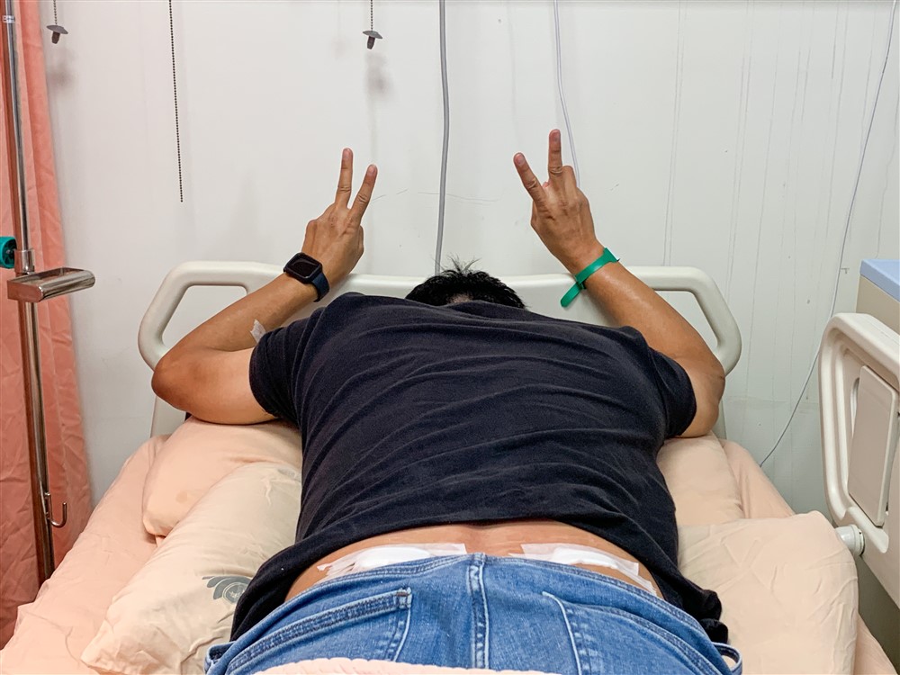 換藥時,大方秀自己臀部的兩個小洞,浚愷得意的說這是救人的印記。他覺得能救人是一件還開心的事情,他也感恩公司的主管跟同事及知道的朋友們,感恩他們共同成全這次救人的任務。「我主管知道我要來,就跟我說:『你就去,不用擔心假的問題,「請假會扣錢」根本不用擔心⋯⋯』,周圍鼓勵我做這件事或是成全我的人,都是成就這件事情的菩薩,不是只有我,師兄師姊也是這樣。」