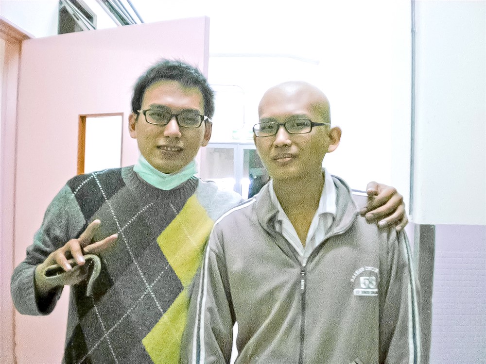 彭浚愷跟在醫院化療的弟弟(右) 合影,弟弟往生時才二十五歲。圖/彭浚愷提供