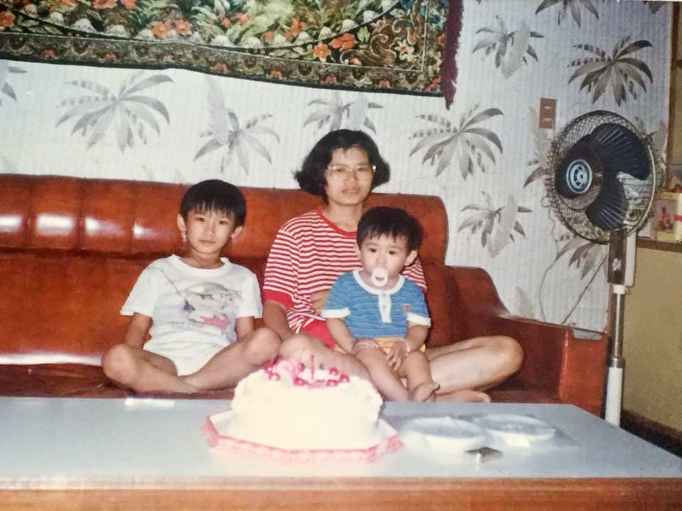 媽媽陳美珍獨自扶養兩個孩子,在市場擺攤賣衣服養家,左為彭浚愷,弟弟小他五歲。圖/彭浚愷提供