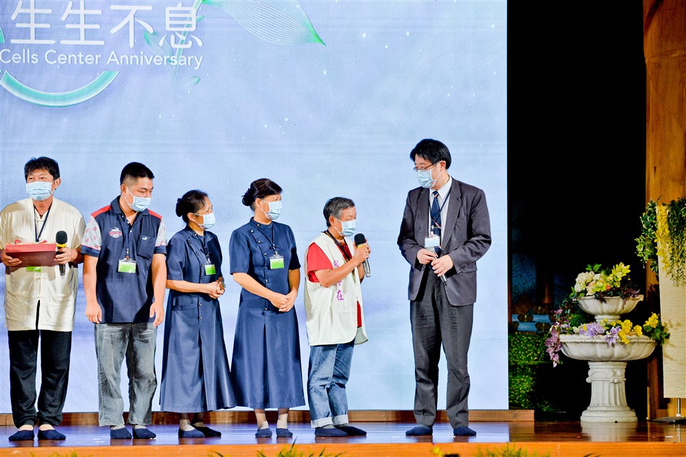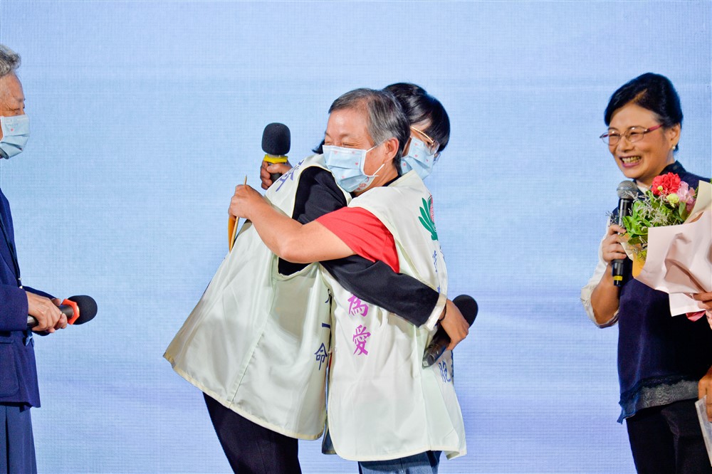 六十一歲的受贈者黃安淇感恩她的主治醫師葉士芃醫師,沒有他的治療和鼓勵,恐怕就沒有捐贈者給她「那一針」,站在臺上的更不會有他們這一家人。