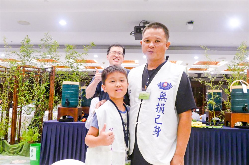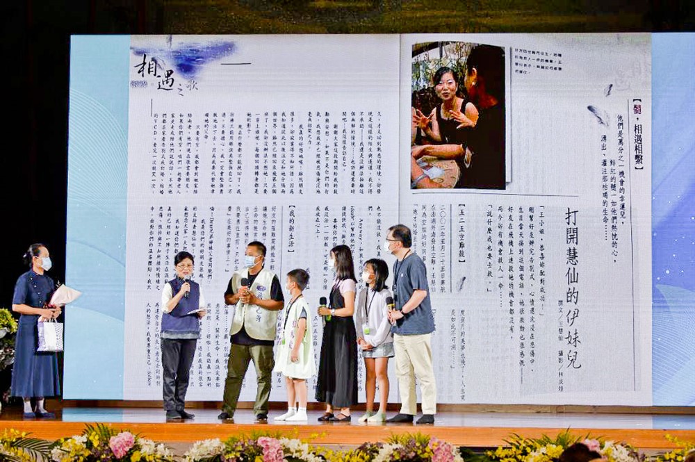 林延信(左)告訴維維(中)要感謝所有默默付出的人。右為維維的媽媽。攝影/蕭必亨