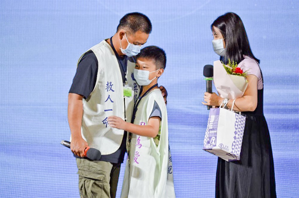 從維維接受移植到六年後的現在,終於可以跟捐贈者相見歡。成人尺寸的受髓者背心,穿在十歲的維維身上,對比出他的嬌小,讓人更捨不得小小年紀就生病的他,更歡喜他好好活了下來。