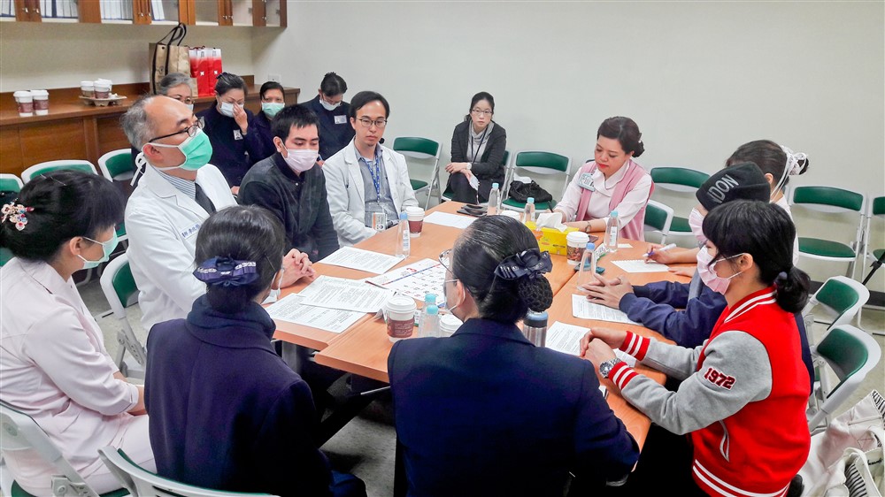 黎文任進入移植室前,成大醫療團隊召開家屬會議,慈濟志工受邀為家屬身分,了解移植過程及移植術後的照護重點。