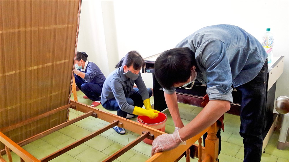 臺南慈濟志工為黎家兄弟租到離醫院近的房子,入厝前還幫忙打掃消毒。