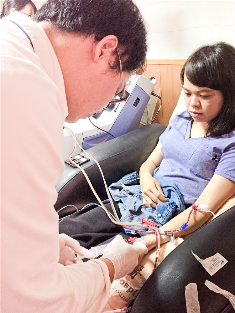 而接到慈濟志工通知配對成功的當下,陳瑜萍說她很驚訝,「竟然有人的身體密碼跟我是一樣的!我立馬問師姑我下一步該怎麼做?我表達了我的意願,可以幫助到別人令我很興奮!」捐贈過程需要施打白血球生長激素,瑜萍說當時的副作用是輕微手臂肌肉痠痛,但不妨礙日常生活,她強調:「很謝謝玉束師姑,每次都專程抽空帶我去配合的診所施打,也時常關心我注射後的反應。」