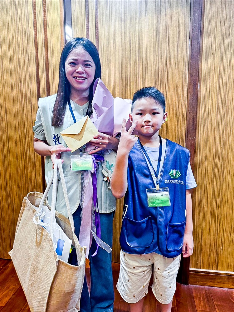 終於,兩人相見歡了!睿睿靦腆地向瑜萍獻花致謝,「謝謝妳捐造血幹細胞給我,讓我能健健康康地長大,沒有妳的大愛,就沒有現在的我,未來也要向姊姊看齊,做一個有愛心的人,努力幫助別人。」