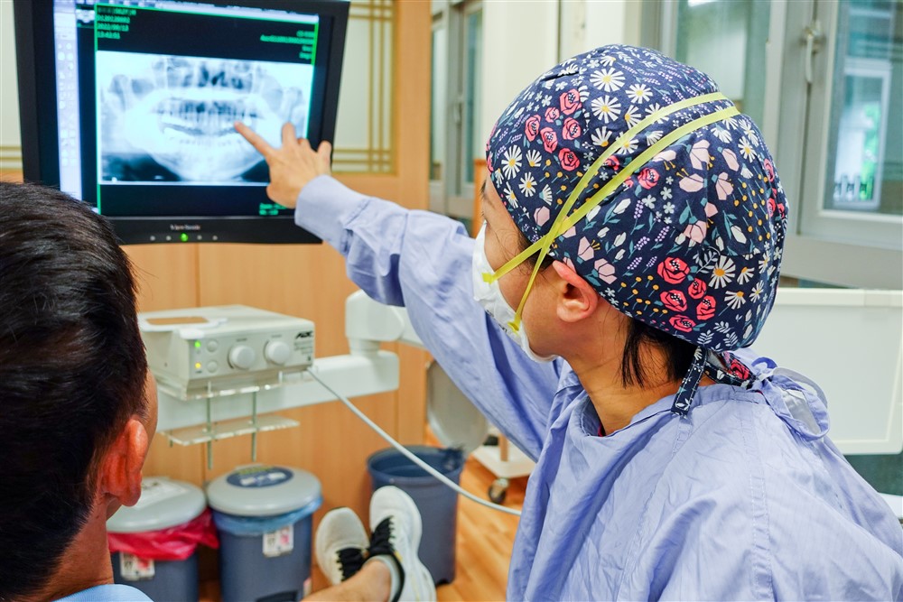 何曉涵醫師以檢查影像說明病人牙齒狀況。