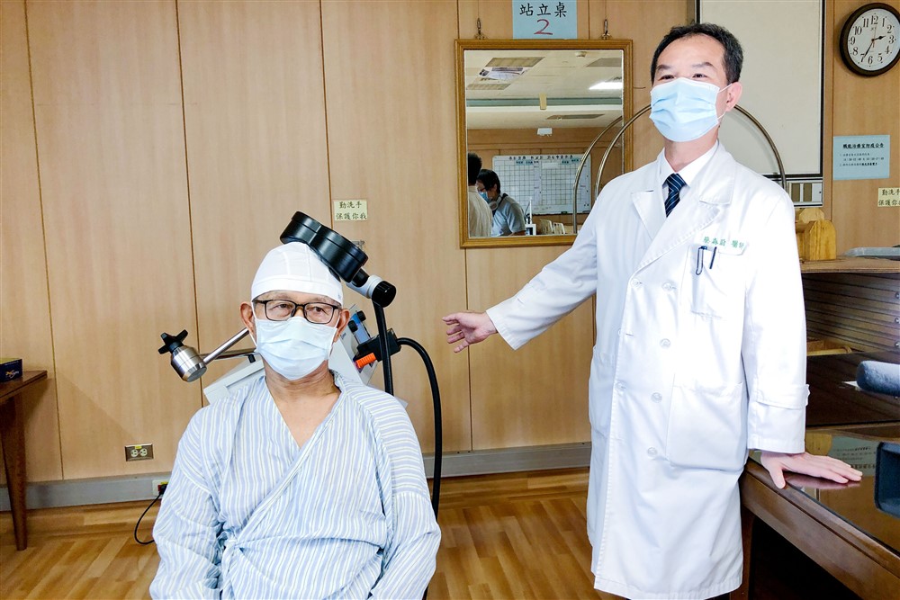 蔡主任表示,國際及臺灣的醫學研究都發現「經顱磁刺激治療(rTMS)」以電磁性脈衝波來刺激大腦不同區域神經,具正面成效。賴先生的臨床診斷為右腦中風後腦神經損傷造成左側肢體無力,左側肢體運動神經控制不佳,藉經由低頻率模式經顱磁刺激,作用在左側腦神經運動皮質區,來激發受損的右側腦皮質神經,平衡左右腦,讓肢體運動功能恢復。賴先生接受經顱磁刺激治療,療程尚未結束,就已明顯感受左側力量慢慢回來,可以更正常的隨意走動。