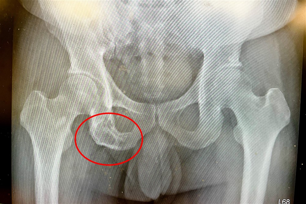 影像檢查顯示坐骨骨頭已被侵蝕。
