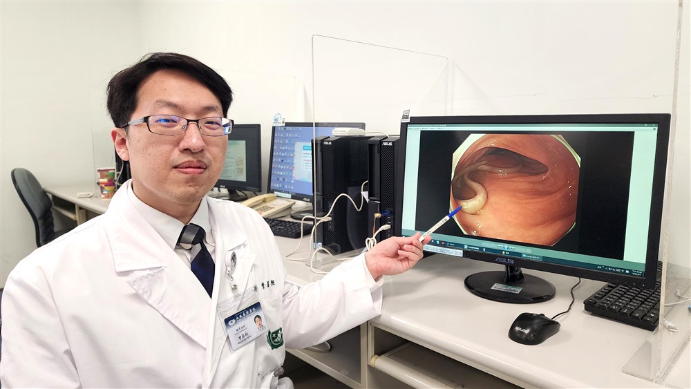 腸胃內科醫師經由大腸鏡檢查在病人腸道中發現蛔蟲。圖/大林慈院提供