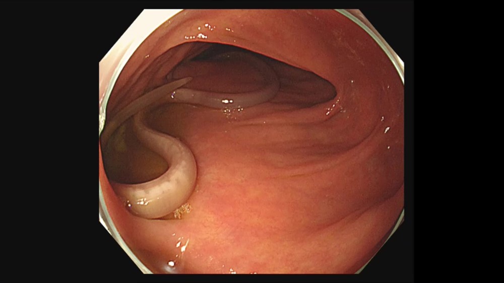 一位年近七旬的女性因肚子脹、體重逐漸減輕,在家人催促下到醫院就醫,經大林慈濟醫院腸胃內科醫師透過大腸鏡檢查,赫然在大腸內發現兩條蛔蟲,令醫師大感驚訝。經詢問得知,病人家中養豬,平時會用豬糞做有機堆肥種菜,病人又愛吃生菜,可能因此讓蟲卵有機會進入體內,所幸給予蛔蟲藥治療後,已成功驅蟲。