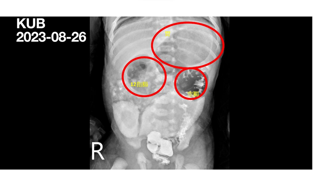 剛出生的小寶(化名)還在媽媽肚子裡時,經由產前檢查發現腹部腸道腫脹的問題,當時的婦產科團隊就建議要密切注意後續的發展,結果小寶出生後,喝一口奶就吐一口,除了完全無法進食之外,還吐出綠色的膽汁,醫師診斷為新生兒腸道閉鎖。轉院來到花東地區唯一擁有小兒外科的花蓮慈濟醫院,由小兒部蕭宇超醫師、小兒外科楊筱惠醫師帶領團隊接手治療,術後十二天康復出院。