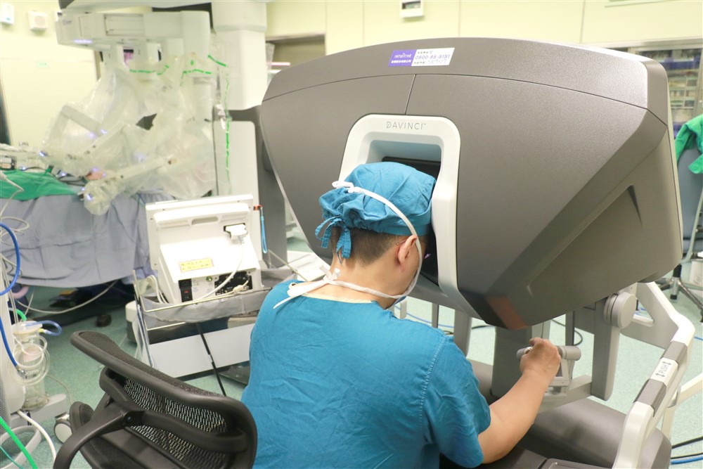 台中慈濟醫院內分泌外科主任高國堯利用達文西器械,施行甲狀腺切除手術。