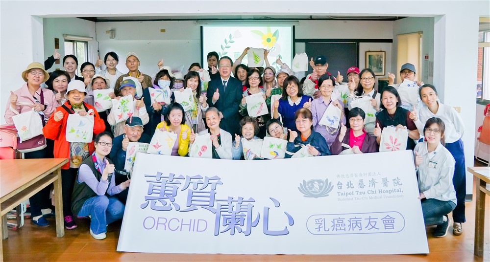根據國民健康署二○二○年的數據統計顯示,乳癌為臺灣女性好發癌症第一位,每年約有一萬五千名的女性發生乳癌,死亡人數將近三千名,發生率逐年遞增且有年輕化趨勢。每年台北慈濟醫院舉辦「蕙質蘭心乳癌病友會」,藉由團體活動,增進乳癌患者及早進入疾病適應階段、接收正確衛教,提升病友們與家屬自我照顧品質,以緩解乳癌自我照顧壓力。二○二三年四月二十二日,台北慈濟醫院張耀仁副院長帶領醫師、護理師、社工師、心理師、行政同仁、病友及家屬共五十多人前往新店文山農場參與「蕙質蘭心乳癌病友會」透過活動,舒緩身心靈。