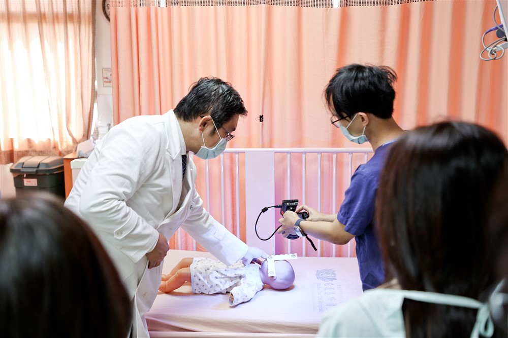 今年二月,花蓮地方法院法官到花蓮慈濟醫院兒保醫療中心參訪,張雲傑主任(左)示範兒科加護病房驗傷過程。攝影/江家瑜