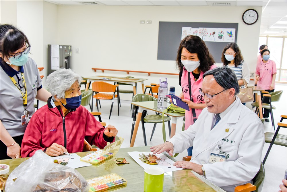 大林慈濟醫院賴寧生院長與嘉義慈濟日照中心長者親切互動。