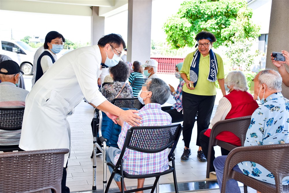 關懷行程結束後,潘永謙院長與同仁繞到池上多元照顧中心,為長輩獻上端午祝福。