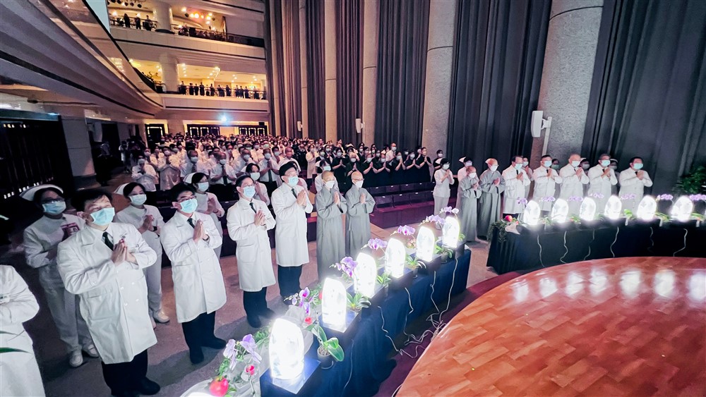 八月二十八日晚間,台北慈濟醫院舉辦「七月吉祥祈福會」,祈求天下無災難。攝影/盧義泓