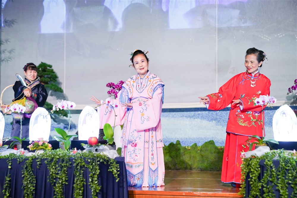 文山新店社區志工透過歌仔戲的方式演繹蔬食短劇,讓大家知道蔬食不僅能身體健康,還能保護環境。書軒小志工與仁美幼兒園也以可愛的肢體動作,表演歌曲〈吃菜尚介讚〉呼籲眾人一起吃素。文山新店手語隊溫馨演出手語歌曲〈給你〉,喚醒眾人造福正念的心。