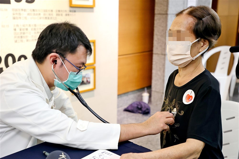 心臟內科王惠生醫師為民眾聽測心音。