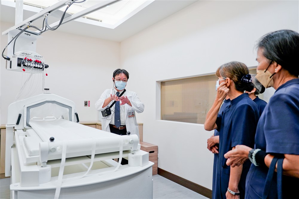 台中慈院放射腫瘤科陳冠文主任(左)說明高階熱治療的治療方式。