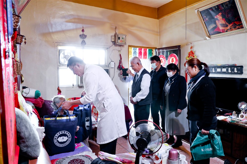 關山慈濟醫院為將新年喜氣帶進社區暗角,同時也希望需要幫助的個案或家庭,在醫療或生活上都能得到合適的補助與照顧。一月二十二日上午在慈濟志工陪同下,潘永謙院長帶領護理部、長照室及行政同仁穿梭縱谷送愛心。一行三十人兵分兩路,由院長先出發行動看診及物資關懷,結束再前往海端鄉與同仁會合,一起為部落阿嬤打掃除舊布新。此次,還結合慈濟環保輔具平臺送上病床、便盆椅、輪椅、看護床、尿布和毛毯,關山國際同濟會也加入善心行列,捐贈保暖衣服、飲品乾糧等民生用品。