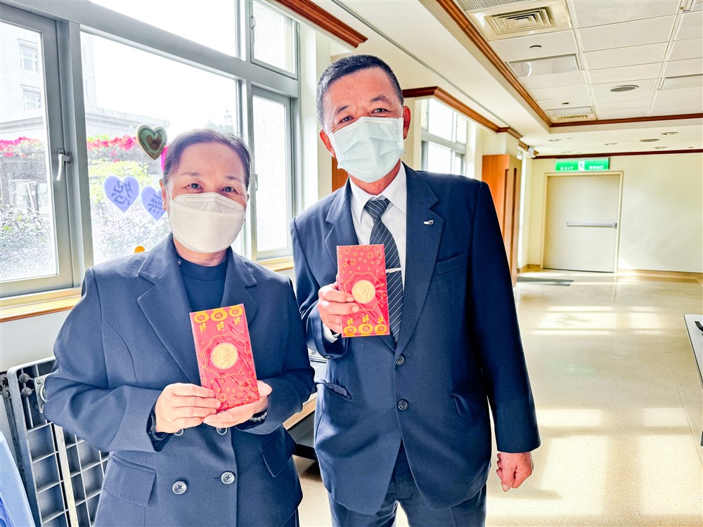 志工黃淑芬(左)、甘振邦(右)是外科加護病房同仁的懿德爸媽之一。