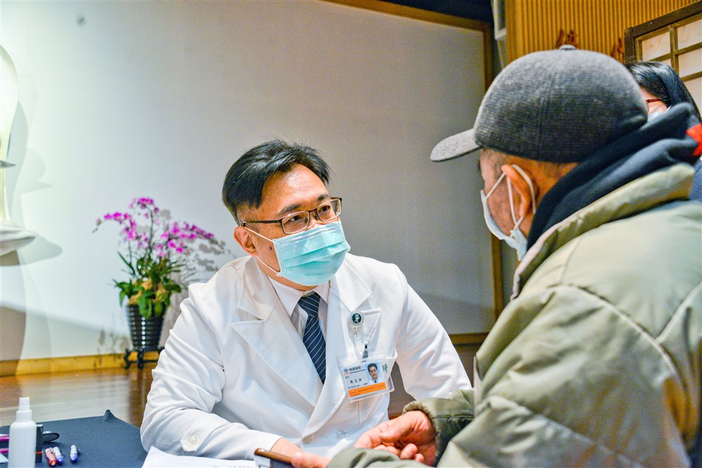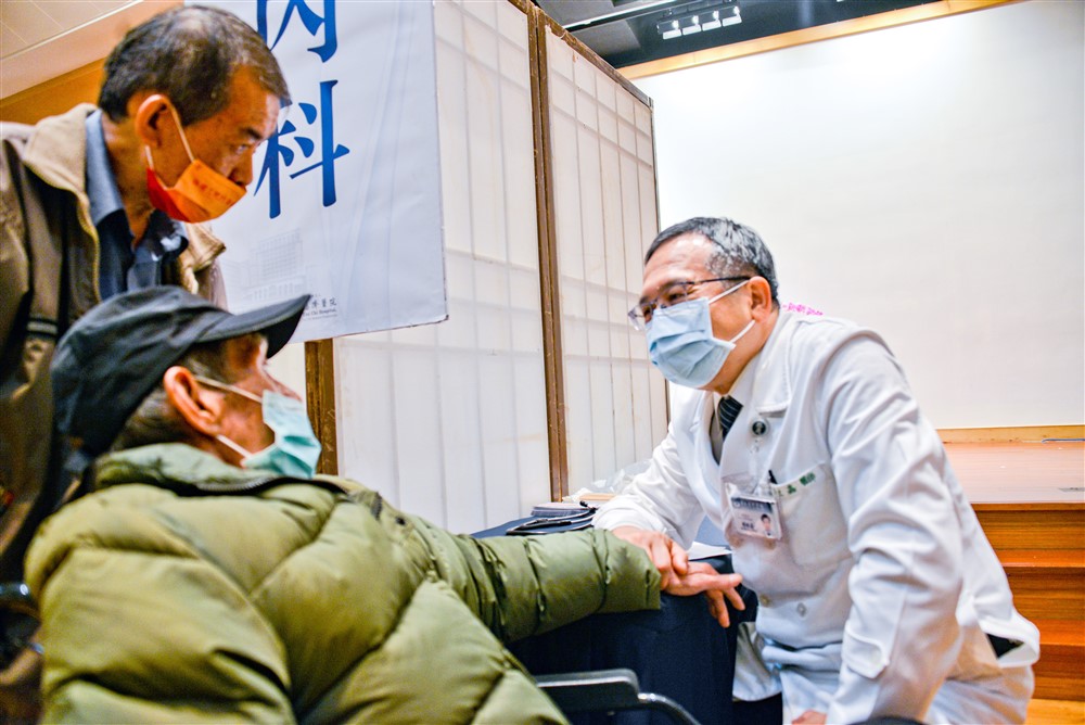 七十一歲的李先生本身患有多重共病,近日覺得身體畏寒不適,內科診區張恒嘉副院長悉心問診,溫馨叮囑要按時服藥、定期回診,同時給予相關衛教。家醫科診區的第一位病人是六十四歲的陳先生,十八年前曾二度中風,去年更因為心絞痛而接受手術,但多年來仍遲遲無法戒菸,這次在陳正裕主任不斷鼓勵下,終於答應來院接受戒菸輔導。