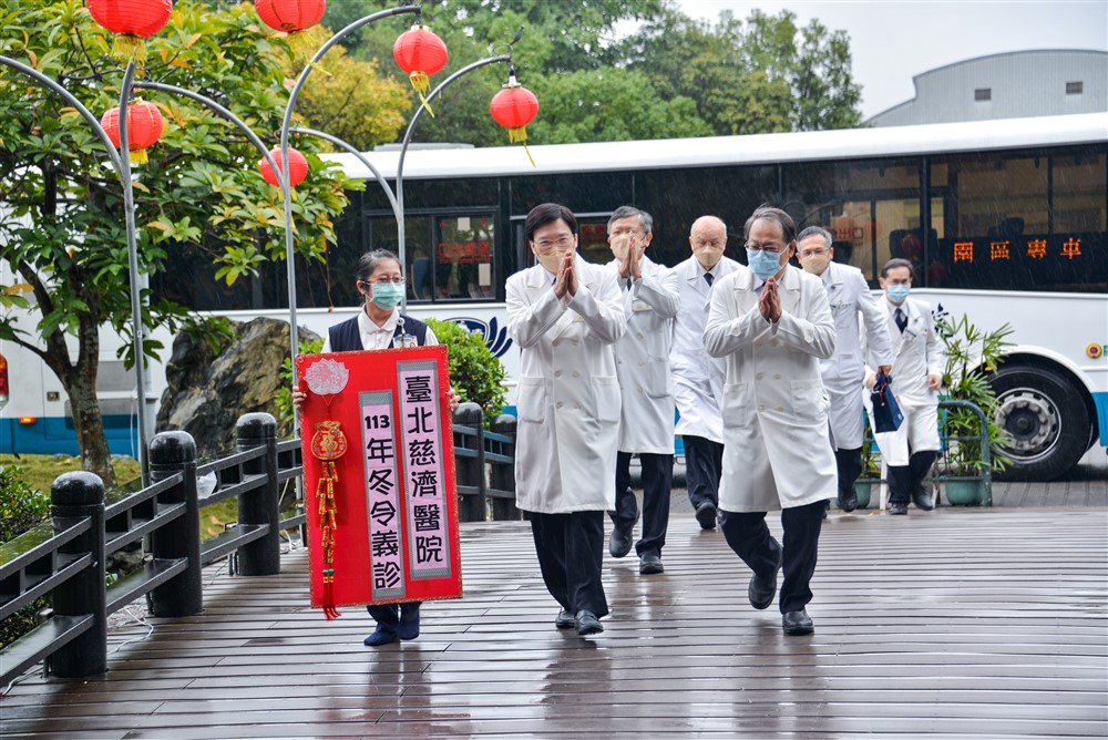 台北慈濟醫院多年來積極參與「冬令發放暨圍爐活動」,提供專業醫療服務與相關諮詢。今年,板橋靜思堂共有三百八十位關懷戶應邀而來,現場安排內科、外科、家醫科、中醫科為需要的民眾進行義診服務,並有營養師提供專業營養諮詢。
