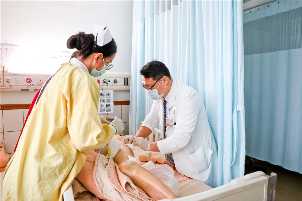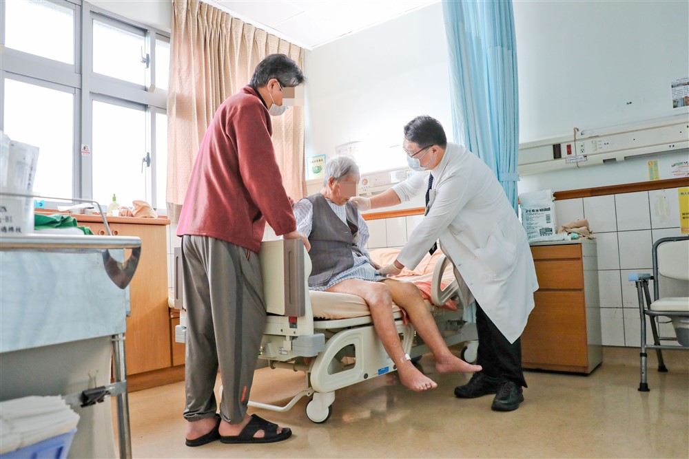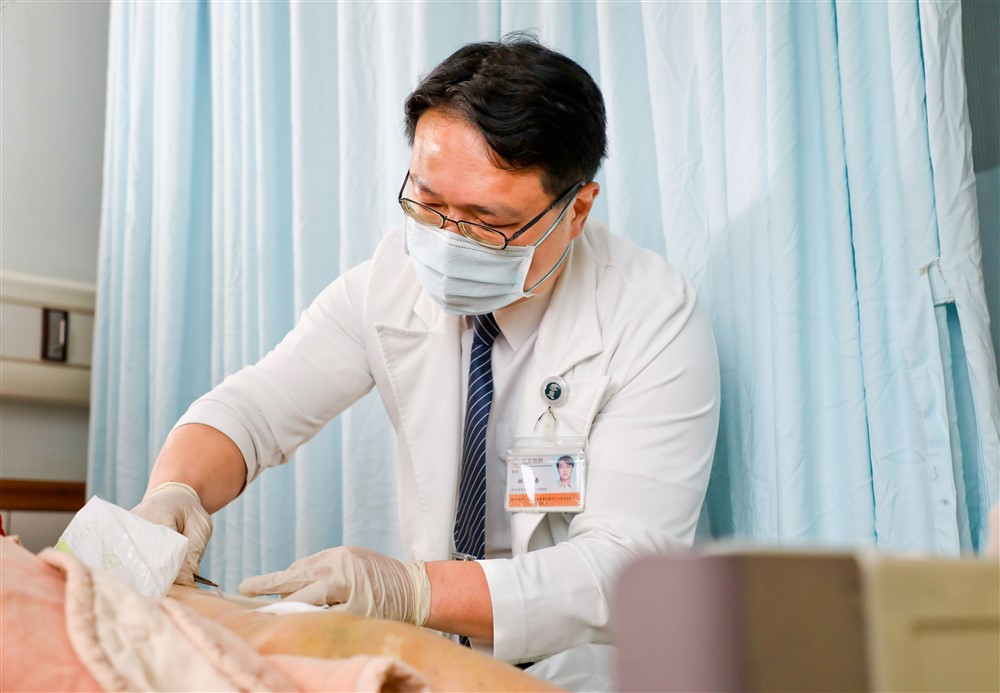 林志晏副院長細心為阿嬤的傷口換藥。