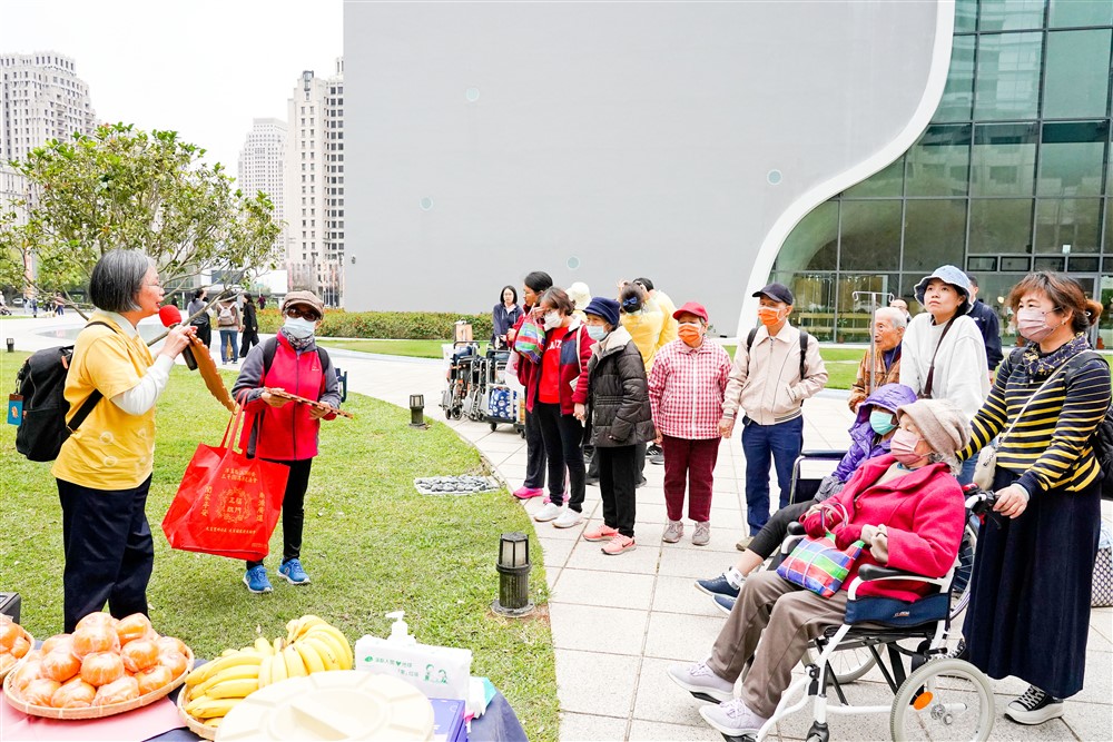 臺中國家歌劇院外的草坪上,社區健康中心同仁備妥豐盛餐點,讓長輩與家屬享受美食,感受春天氣息。林奶奶在先生、女兒及孫女陪伴下,一家三代共享愉快時光,吃涼麵、剝橘子。賴怡伶主任表示,簡單的動作都是長期生活訓練才能維持的功能,台中慈院對失智長輩非藥物治療的投入,就是讓他們「學會生活」。